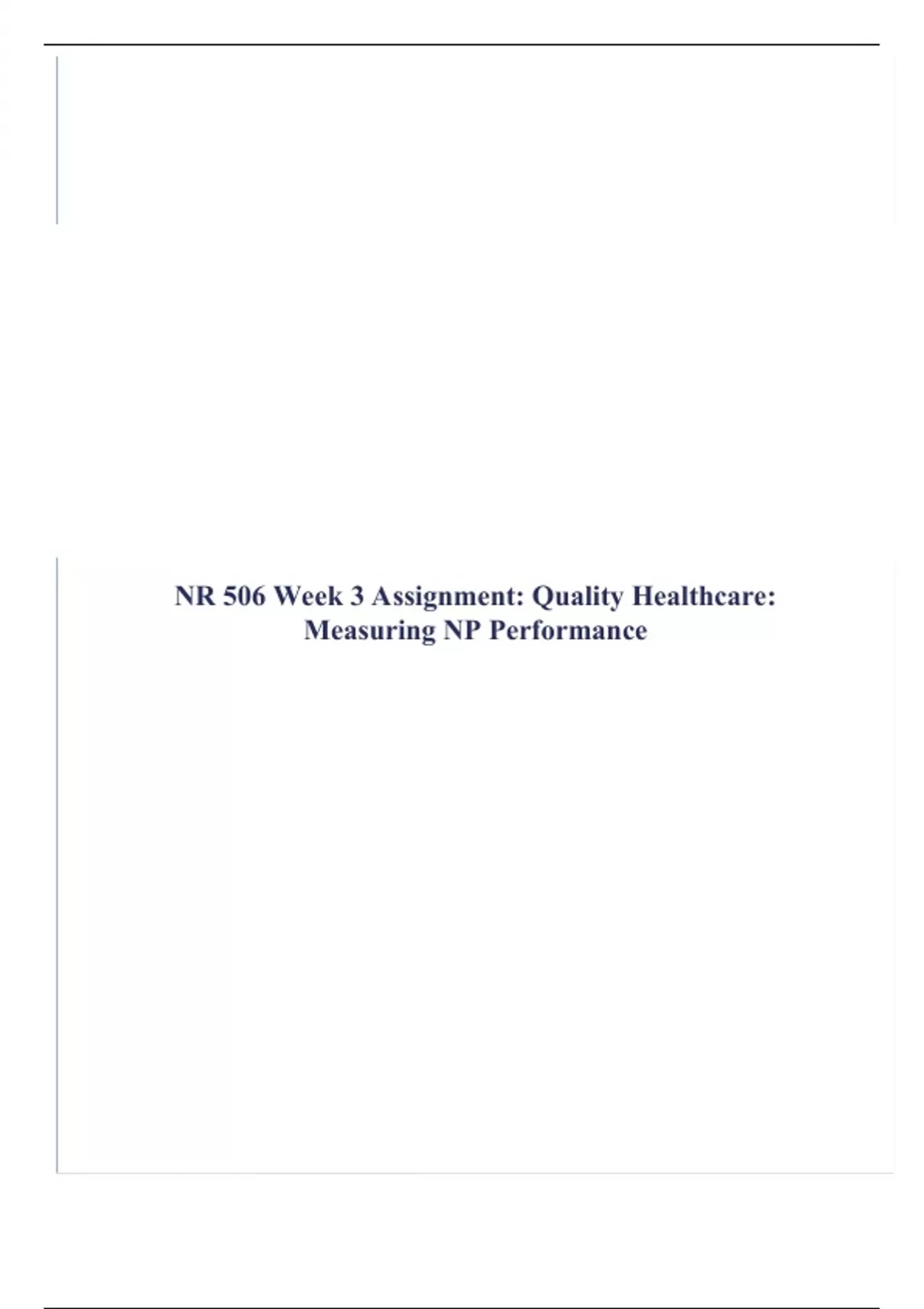 NR 506 Week 3 Assignment: Quality Healthcare: Measuring NP Performance