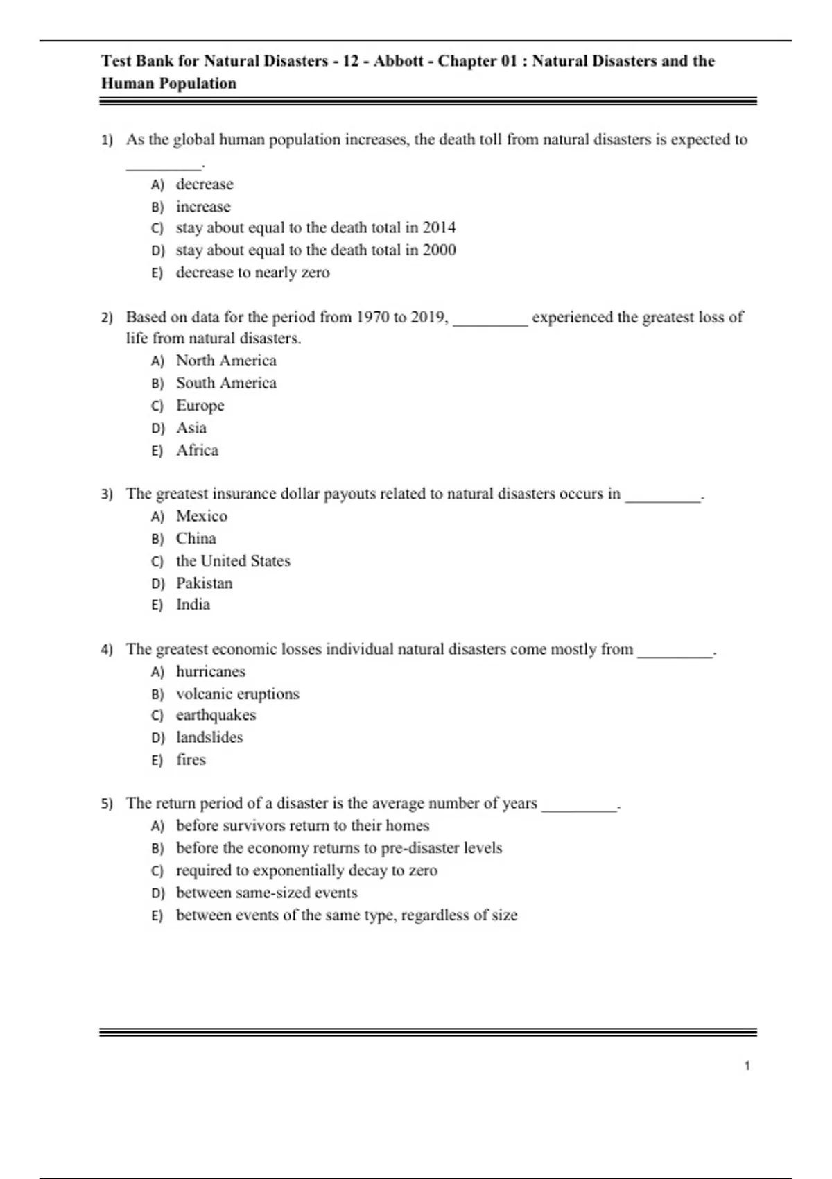 Test Bank For Natural Disasters, 12th Edition All Chapters - 9781264091164