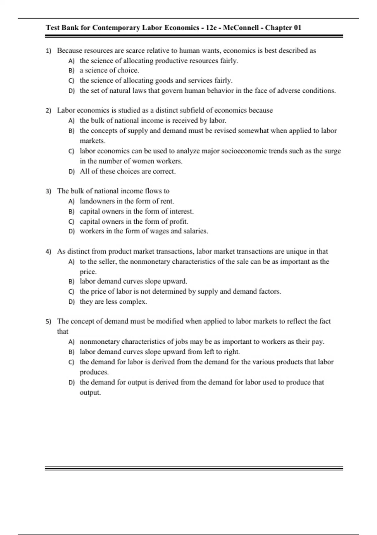 Test Bank For Contemporary Labor Economics, 12th Edition All Chapters