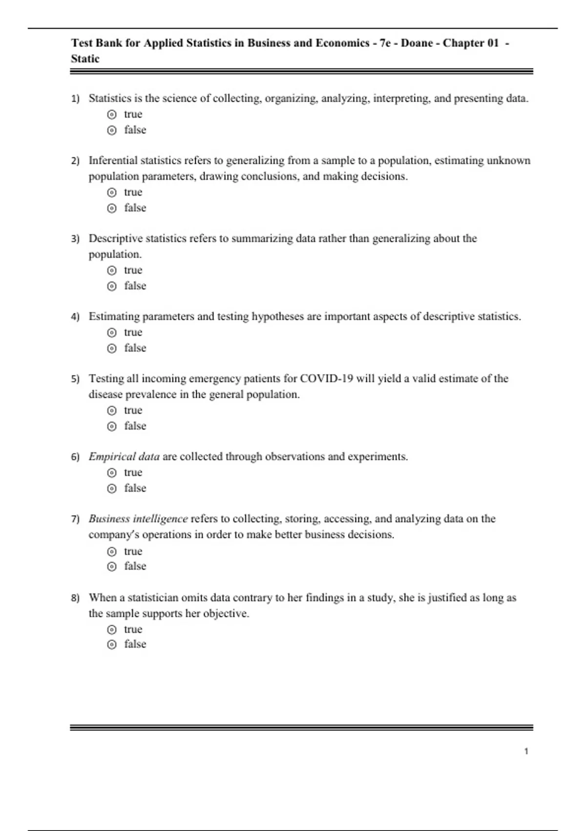 Test Bank For Applied Statistics in Business and Economics, 7th Edition All Chapters - 9781260716283