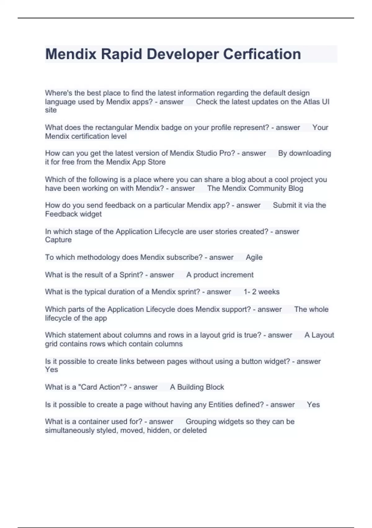 Mendix Rapid Developer Cerfication Questions with correct Answers