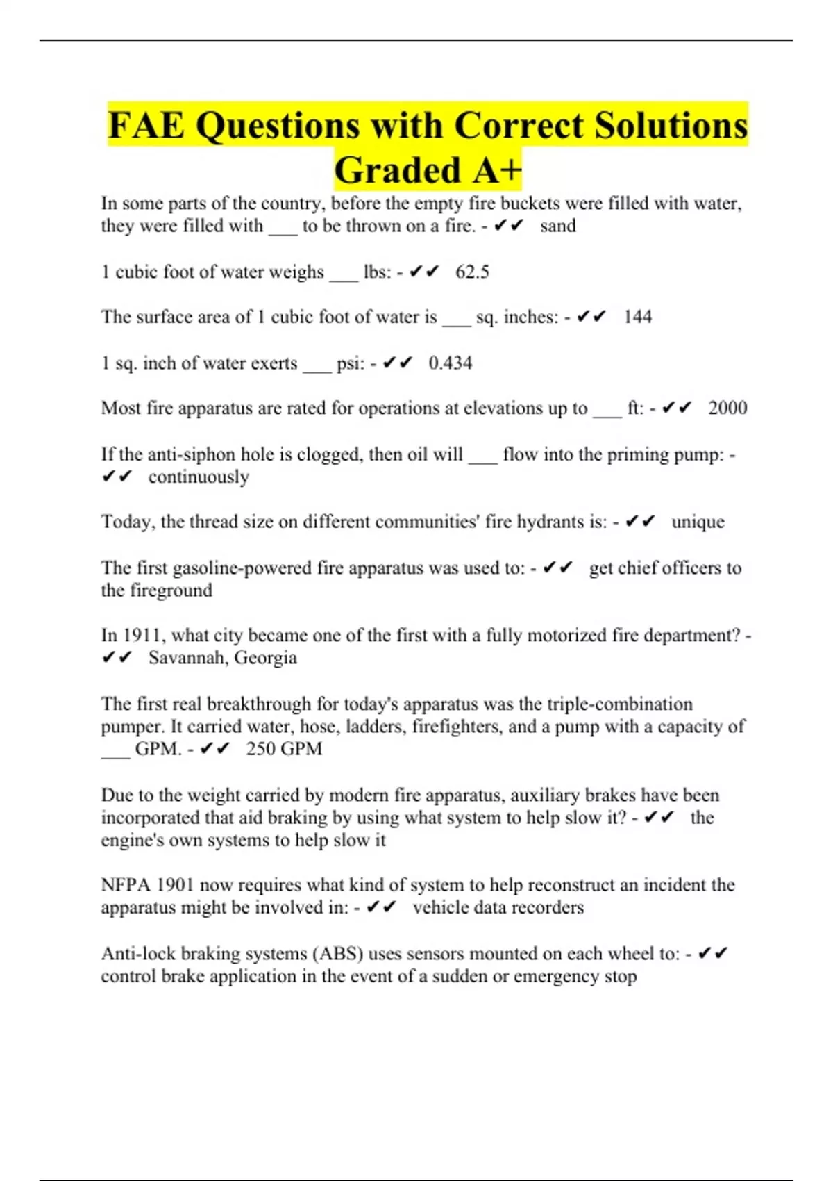 FAE Questions with Correct Solutions Graded A+
