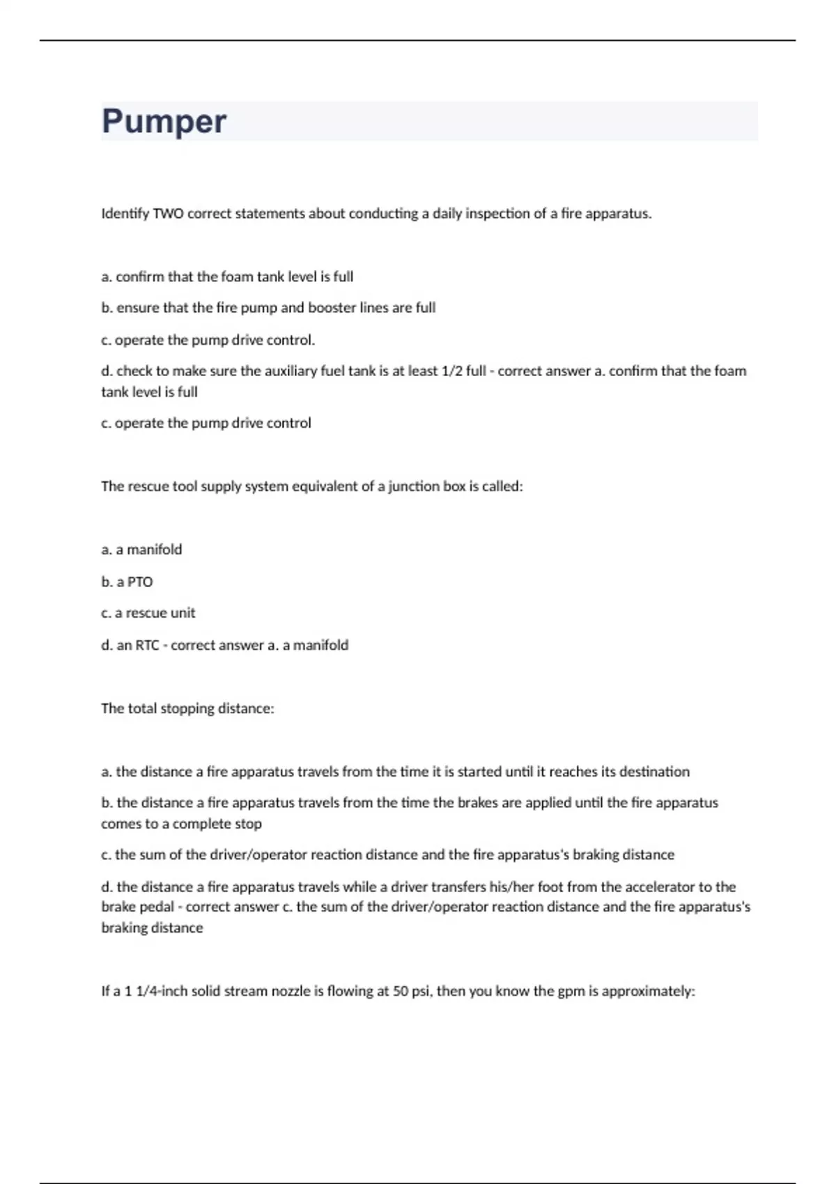 Pumper question n answers graded A+ 2023