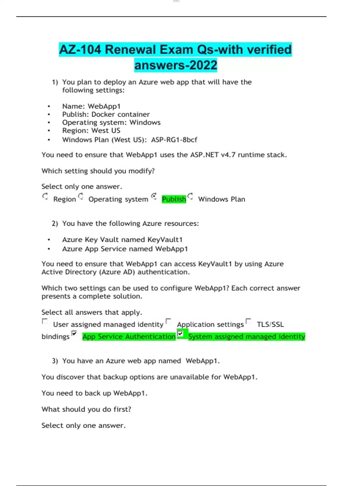 AZ-104 Renewal Exam Qs-with verified answers-2022