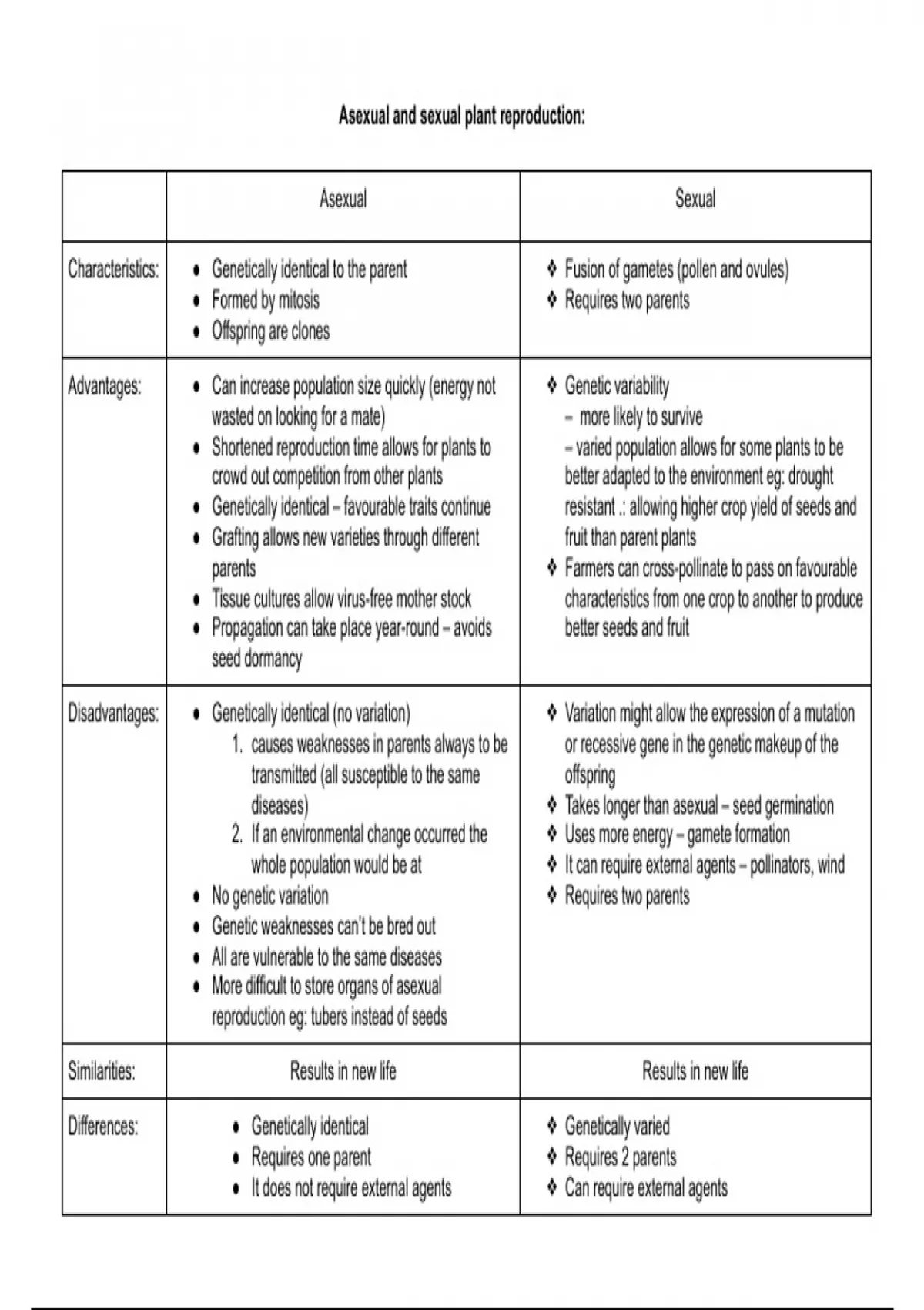 Characteristics: ● Genetically identical to the parent ❖ Fusion of gametes (pollen and ovules)