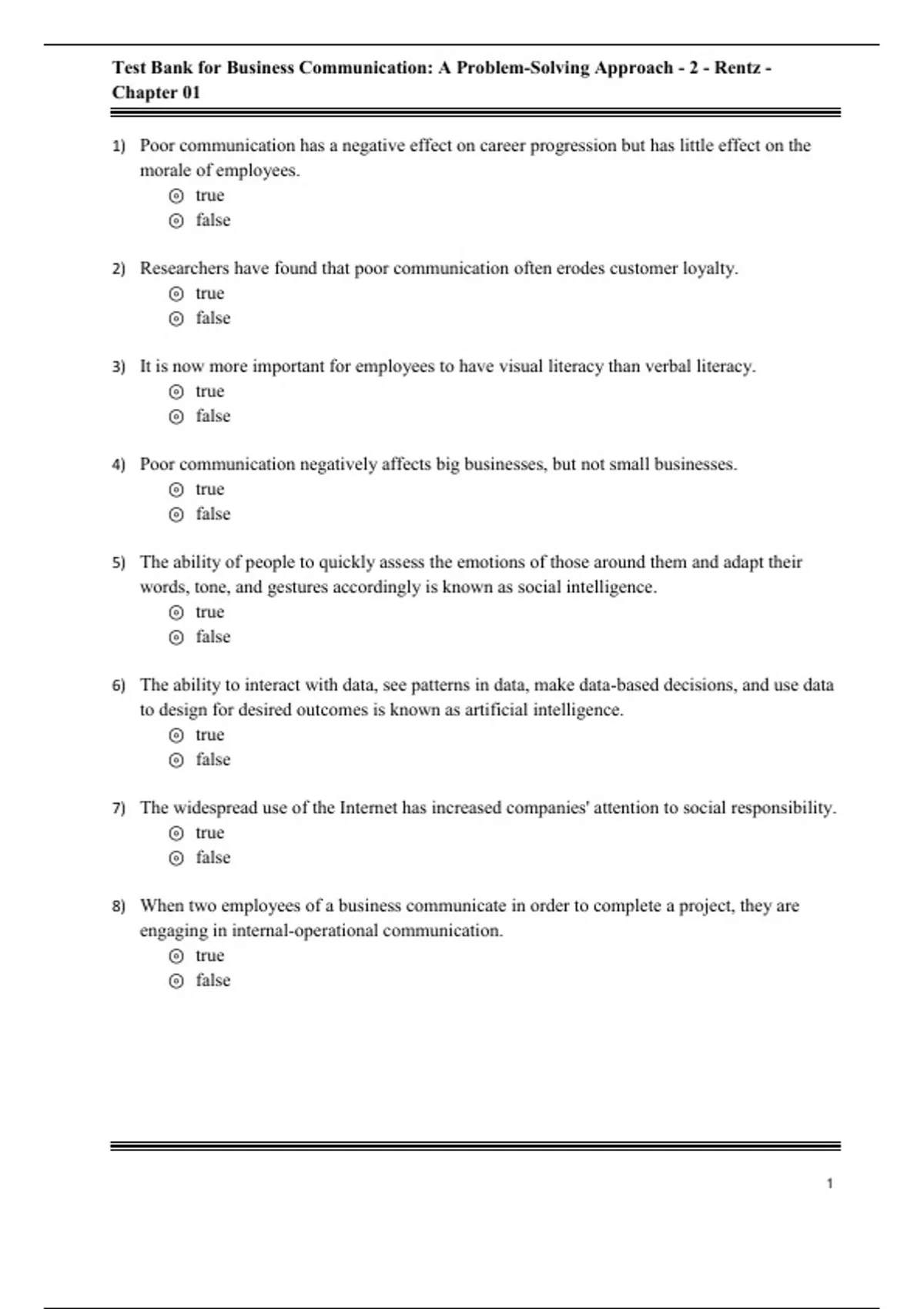 Test Bank For Business Communication: A Problem-Solving Approach, 2nd Edition All Chapters - 9781260088359