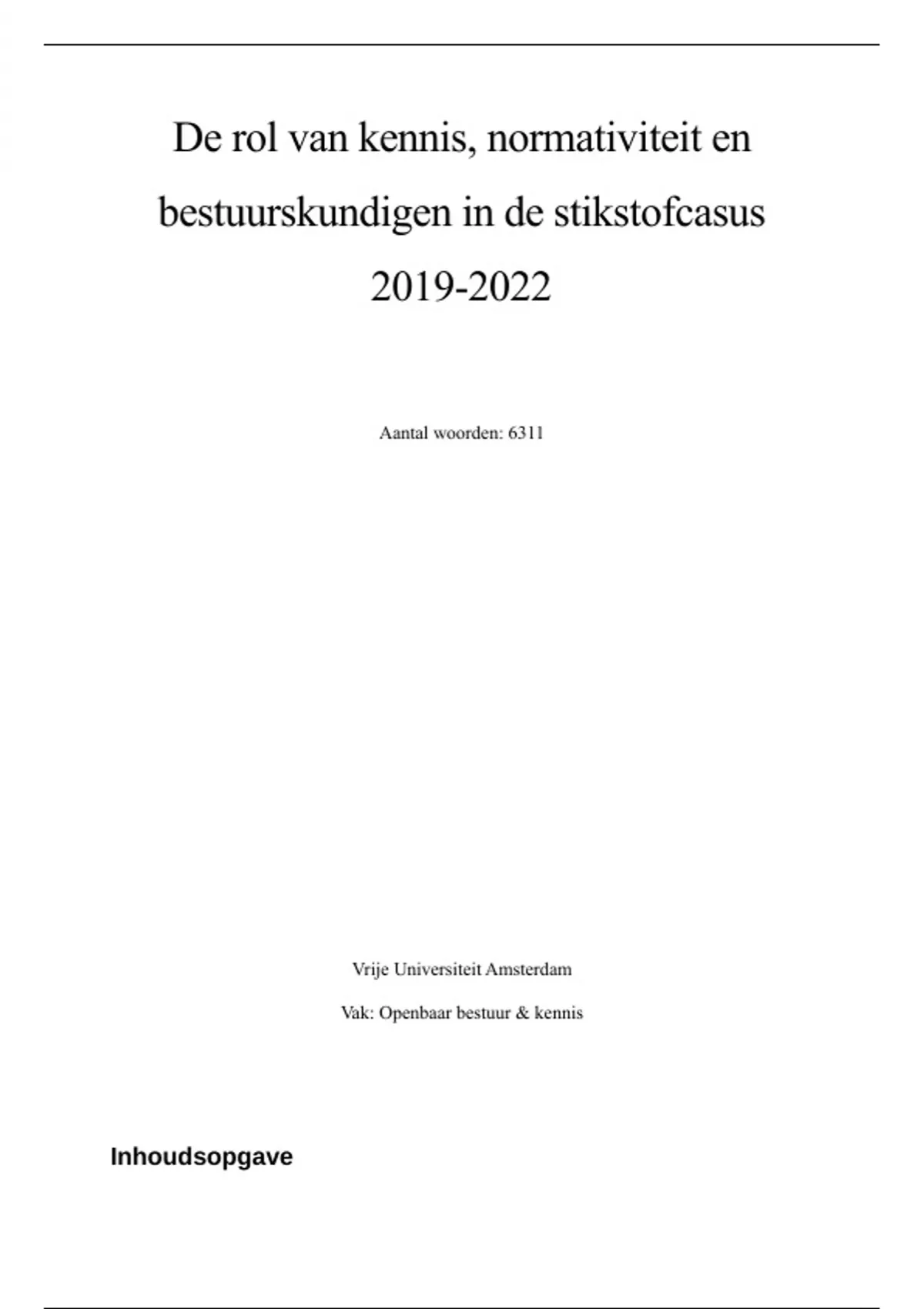 Essay Stikstofcasus voor het vak Openbaar Bestuur en Kennis - Cijfer 8,5