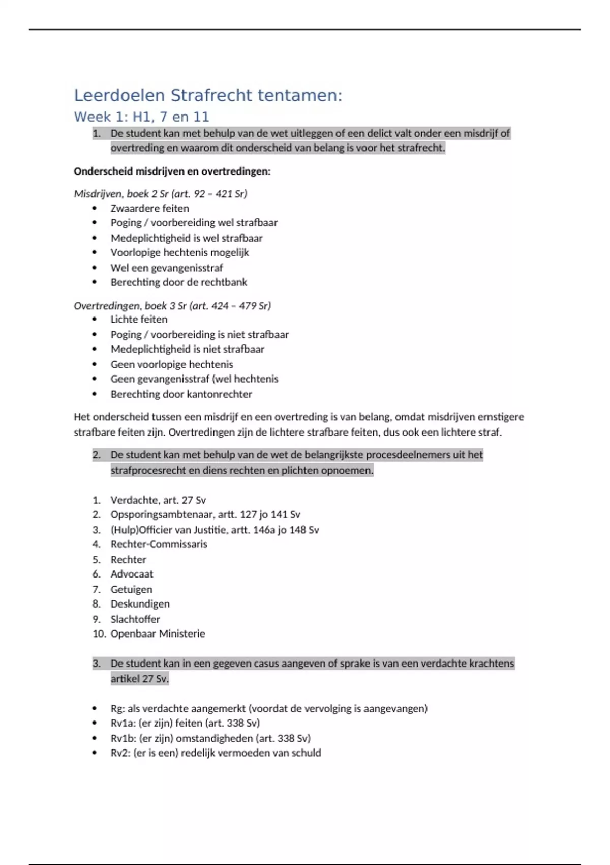 Leerdoelen Strafrecht tentamen: