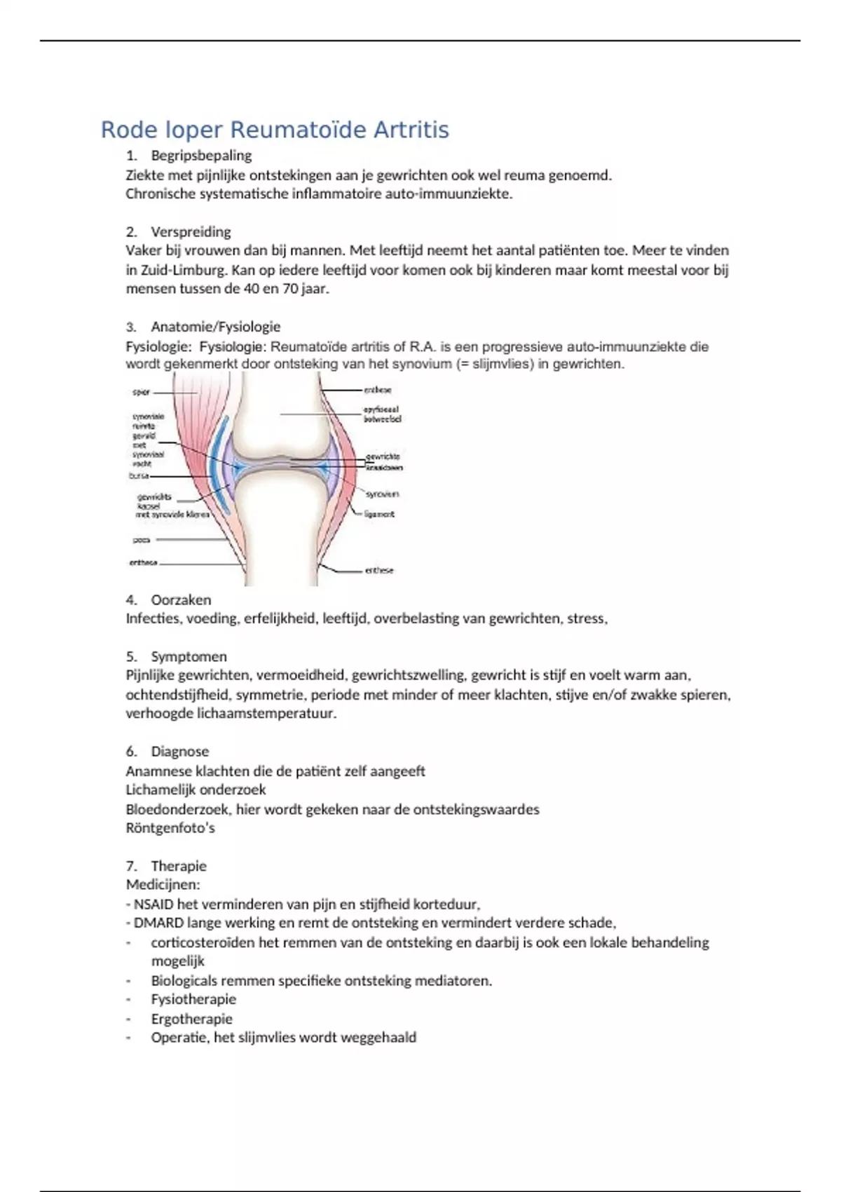 Fysiologie: Fysiologie: Reumatoïde artritis of R.A. is een progressieve auto-immuunziekte die