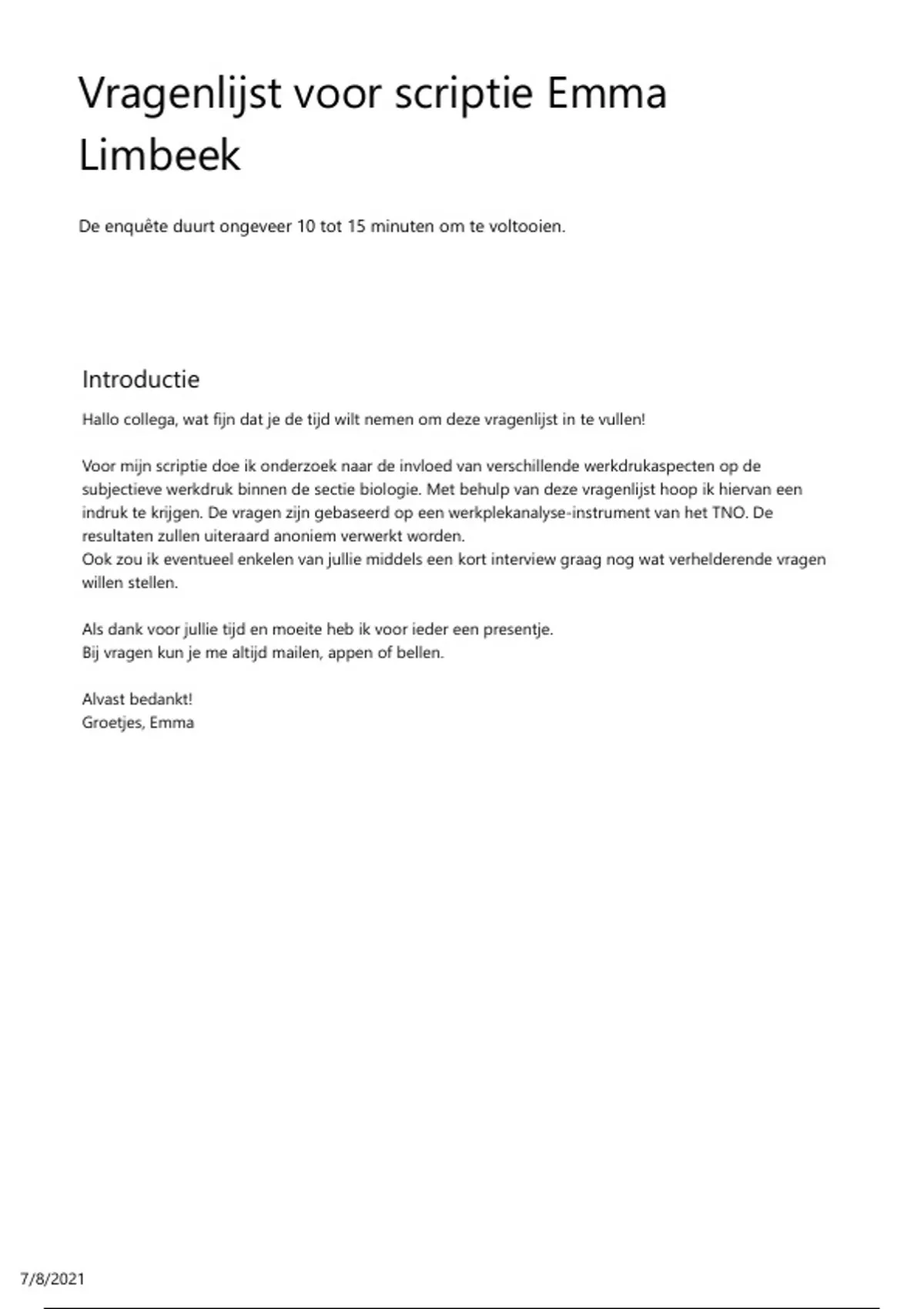 Vragenlijst voor scriptie Emma