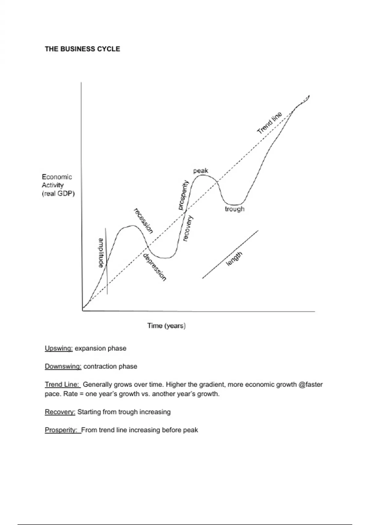 Trend Line: Generally grows over time. Higher the gradient, more economic growth @faster