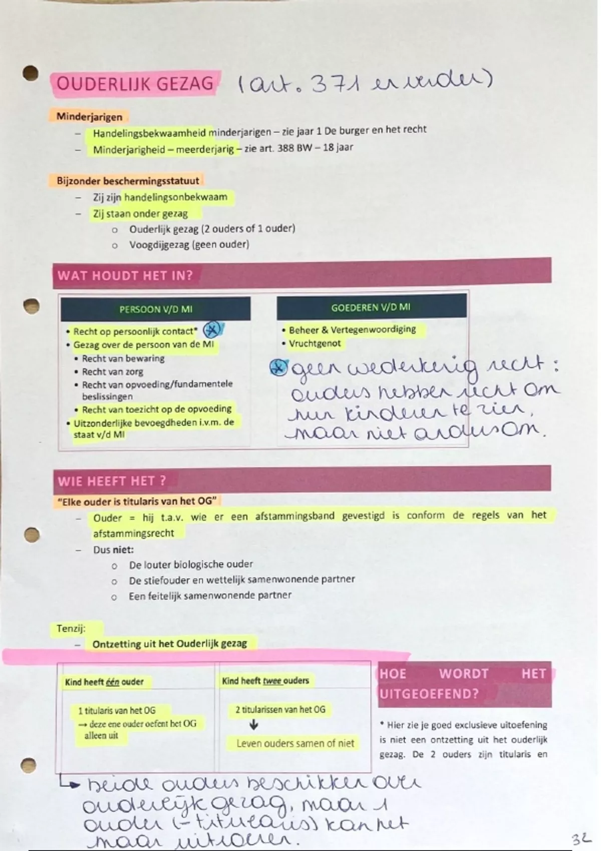 Samenvatting 'Ouderlijk Gezag' - Gezinnen in Transitie (93SMW3110)