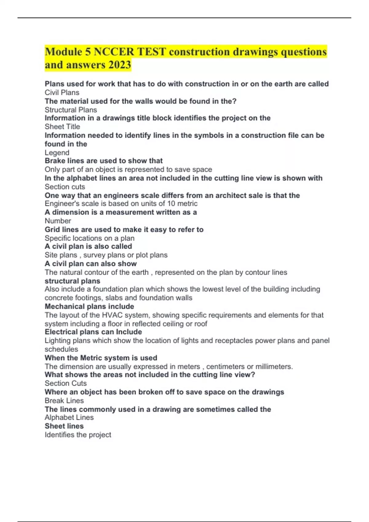 Module 5 NCCER TEST construction drawings questions and answers 2023