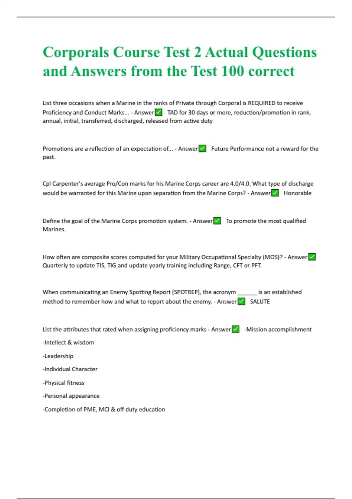 Corporals Course Test 2 Actual Questions and Answers from the Test 100 correct