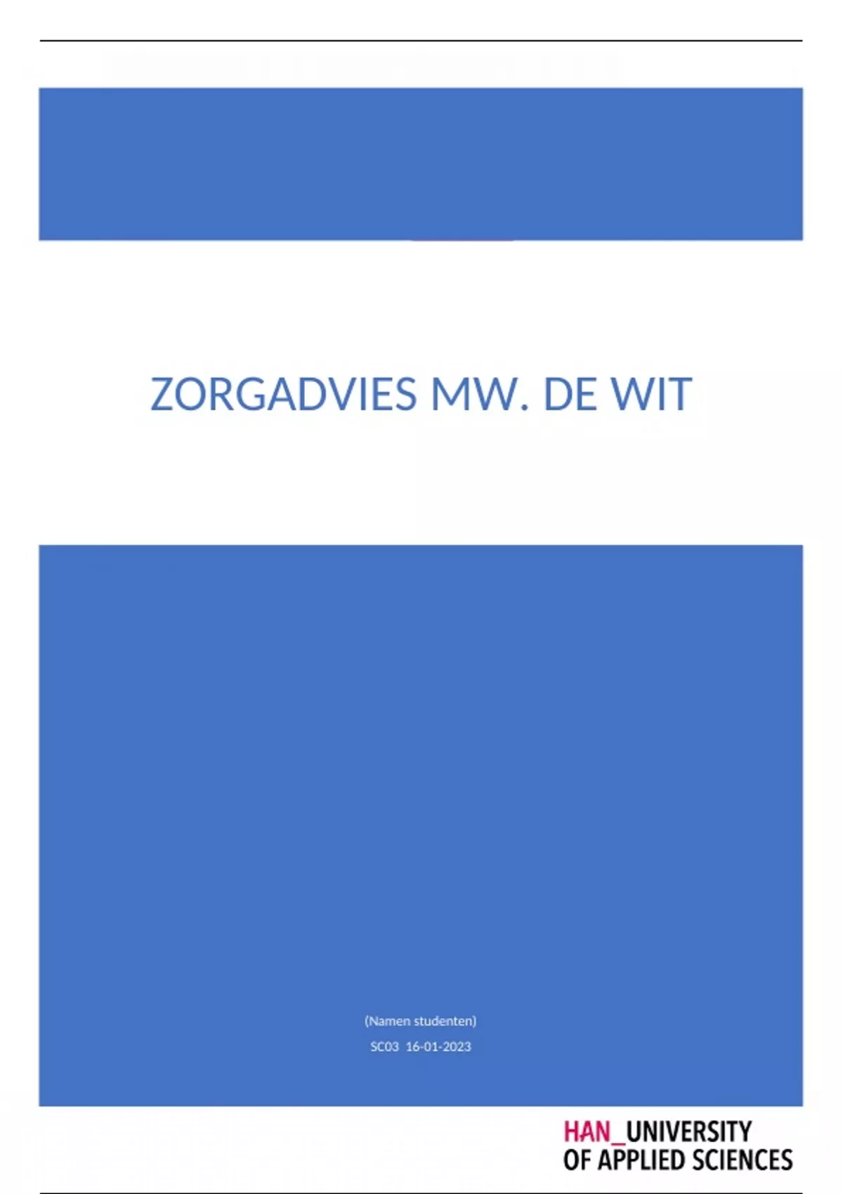 Dit is een zorgadvies wat je moet schrijven in OWE 8-Indiceren van zorg. Dit is een groepsopdracht waarbij je een hele dag aan de slag gaat met deze opdracht.