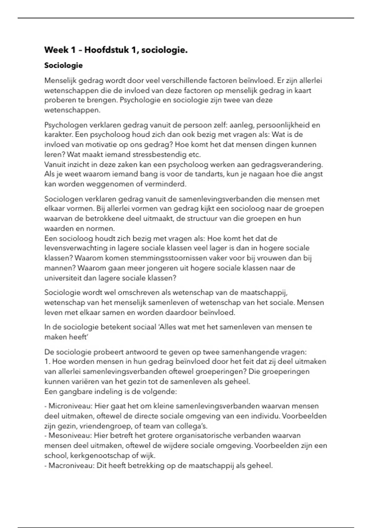Week 1 – Hoofdstuk 1, sociologie.