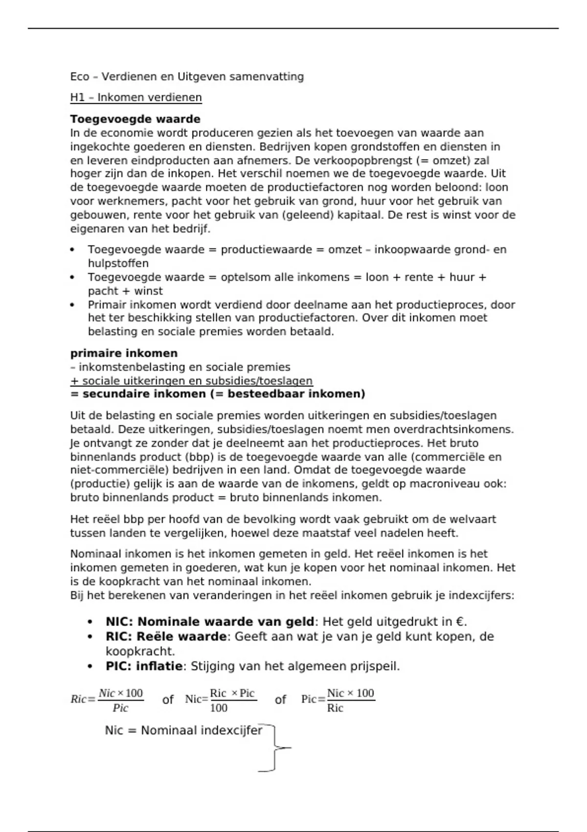 Samenvatting Economie Verdienen en Uitgeven LWEO