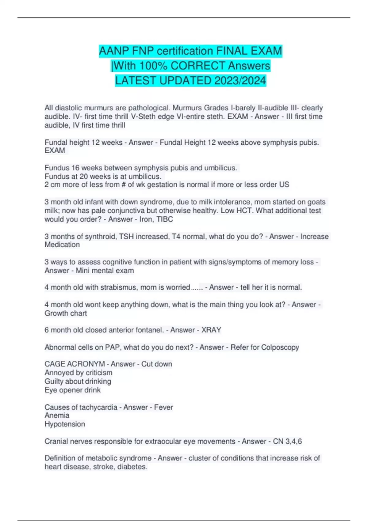 Fundal height 12 weeks - Answer - Fundal Height 12 weeks above symphysis pubis.