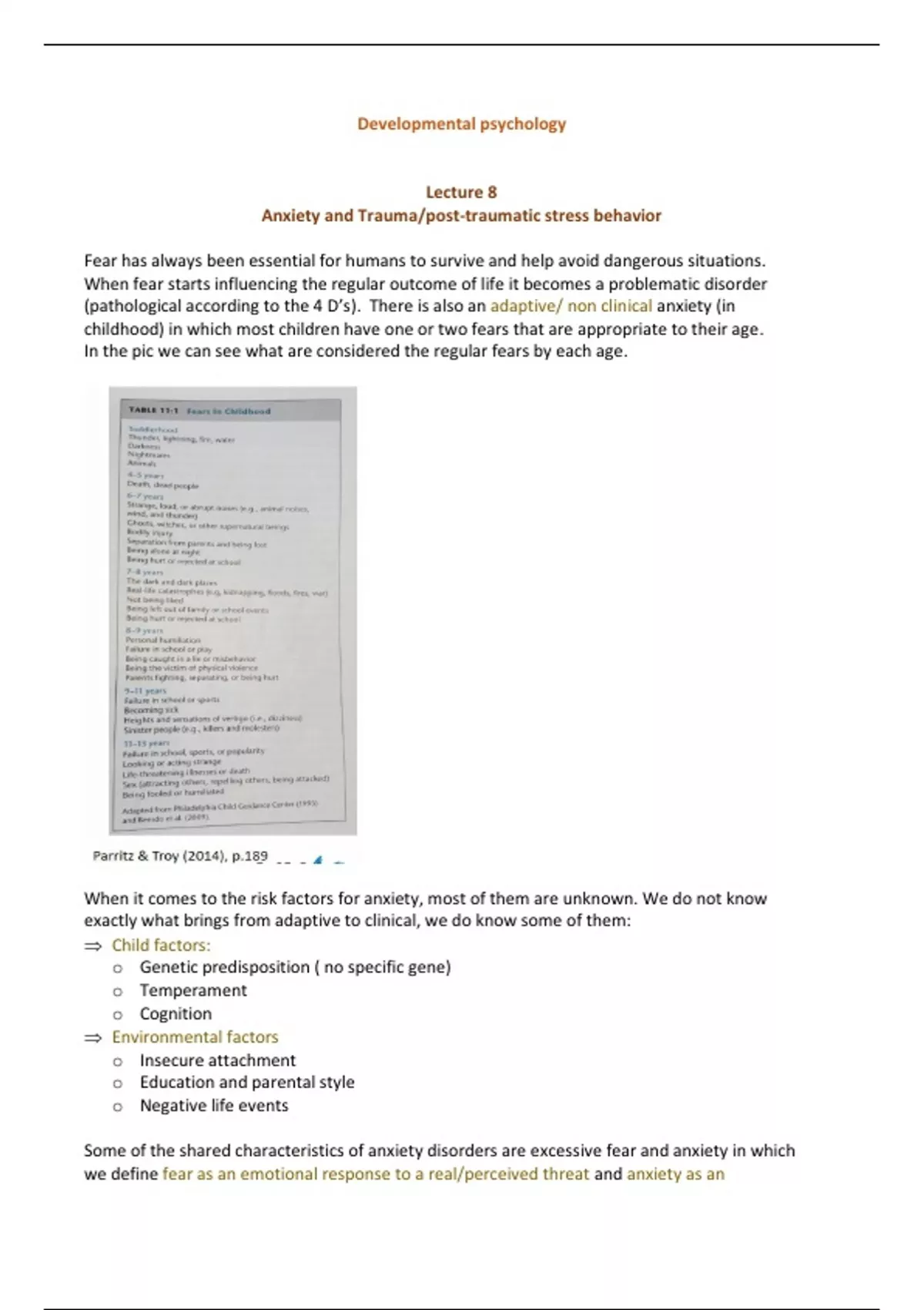 childhood) in which most children have one or two fears that are appropriate to their age.