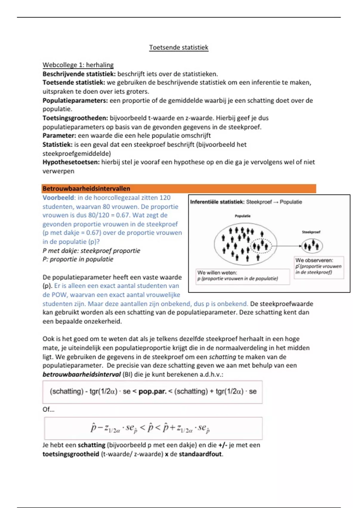 populatieparameter. De precisie van deze schatting geven we aan met behulp van een