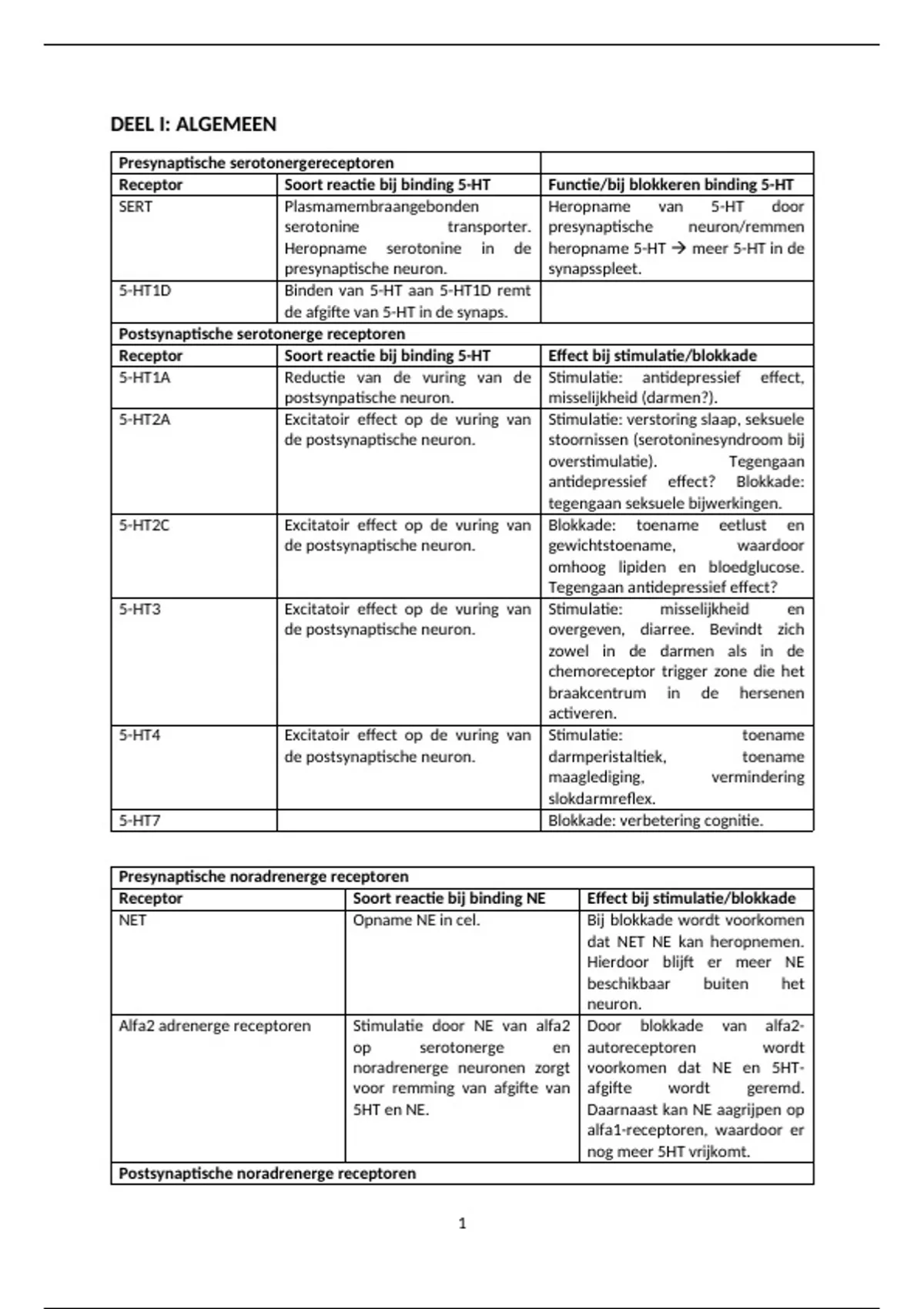 Geneesmiddel Receptor Klinisch relevant? Werking/bijwerkingen/extra Bijwerkingen
