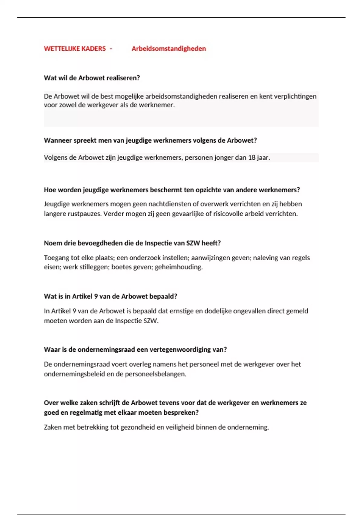 Zaken met betrekking tot gezondheid en veiligheid binnen de onderneming.