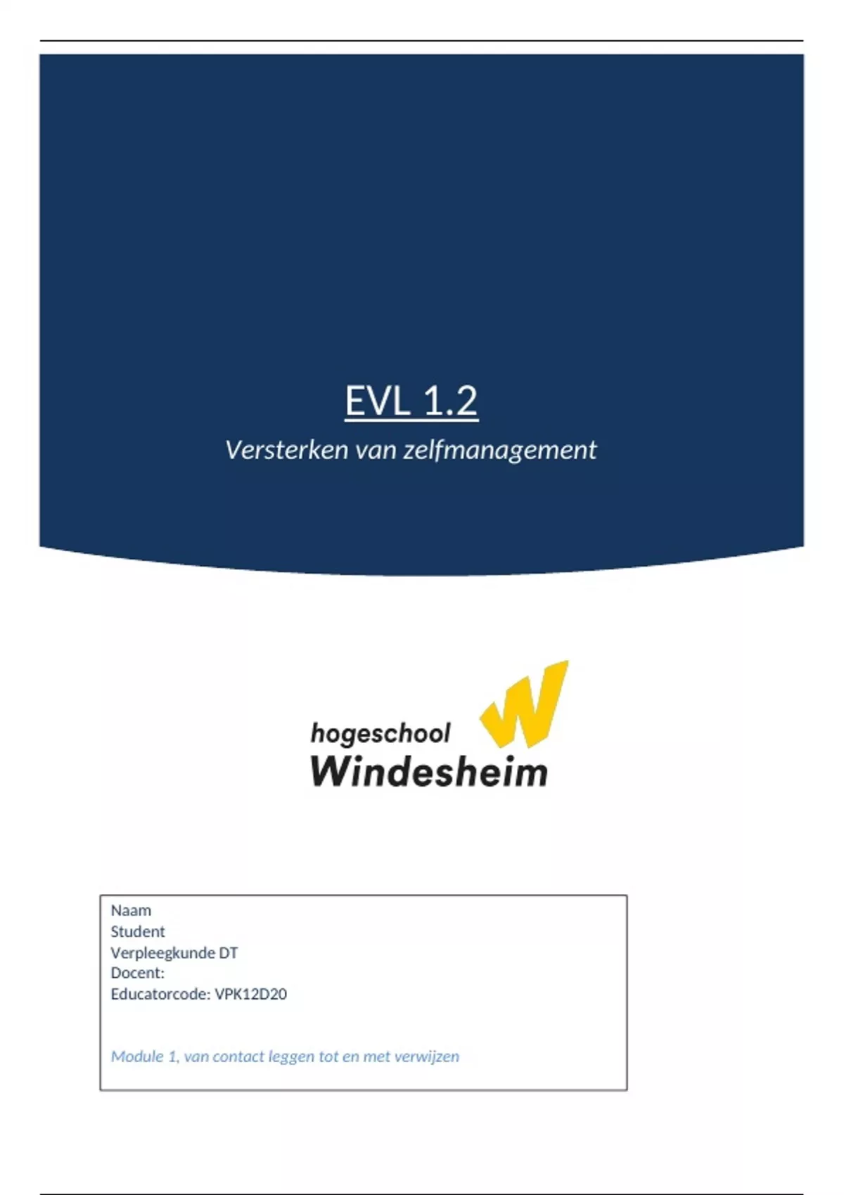 Voor u ligt de uitwerking van EVL 1.2 welke ik in opdracht van de opleiding verpleegkunde deeltijd aan de