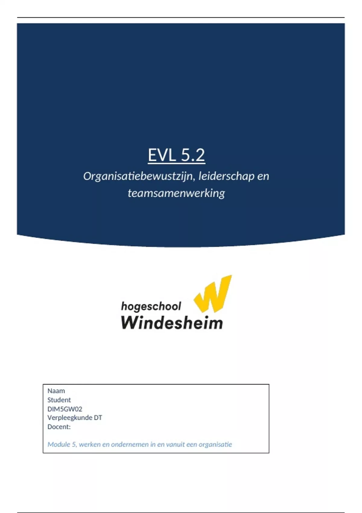 In dit rapport leest u de analyse van opdracht EVL 5.2, organisatiebewustzijn, leiderschap en