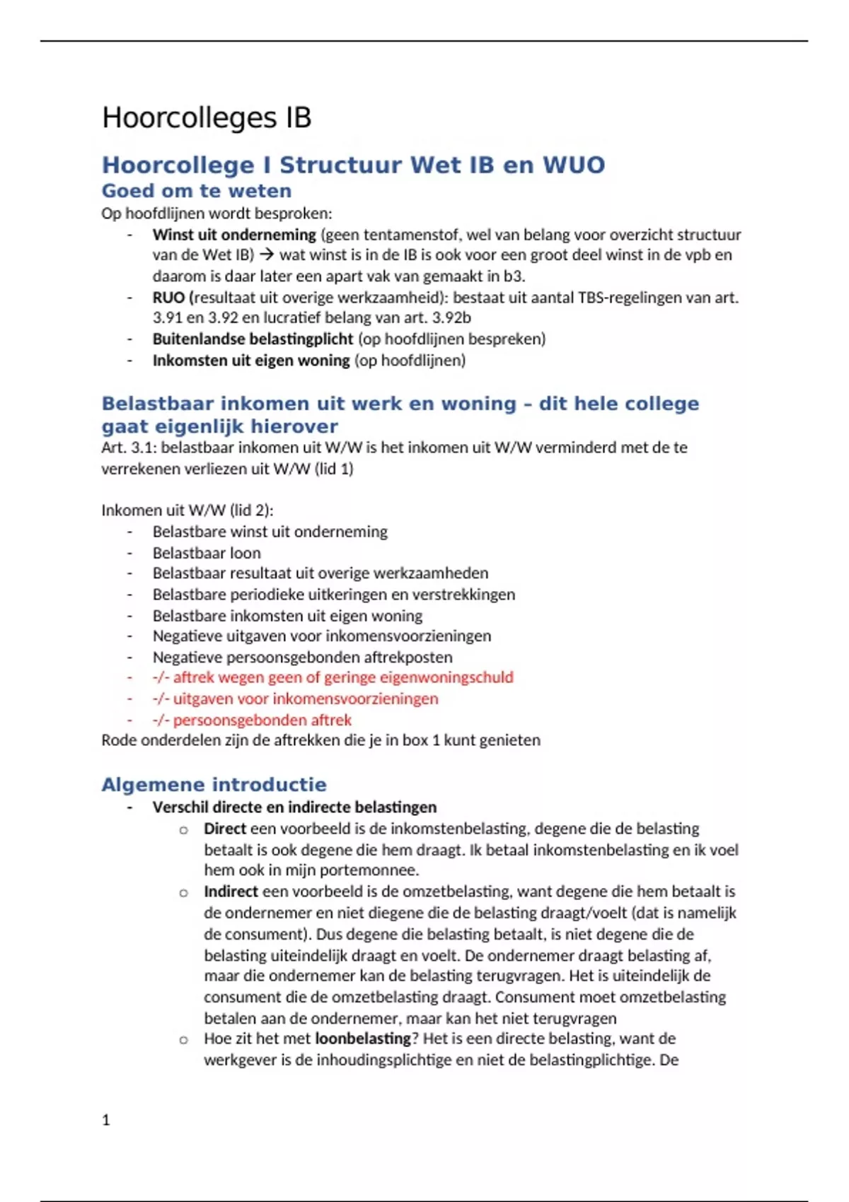 Rode onderdelen zijn de aftrekken die je in box 1 kunt genieten