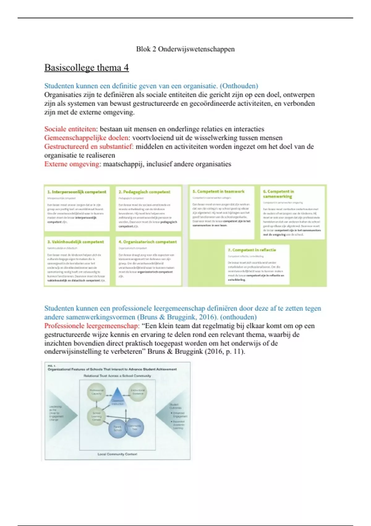 Studenten kunnen de definitie van schooleffectiviteit van Creemers en Sleegers (2009)