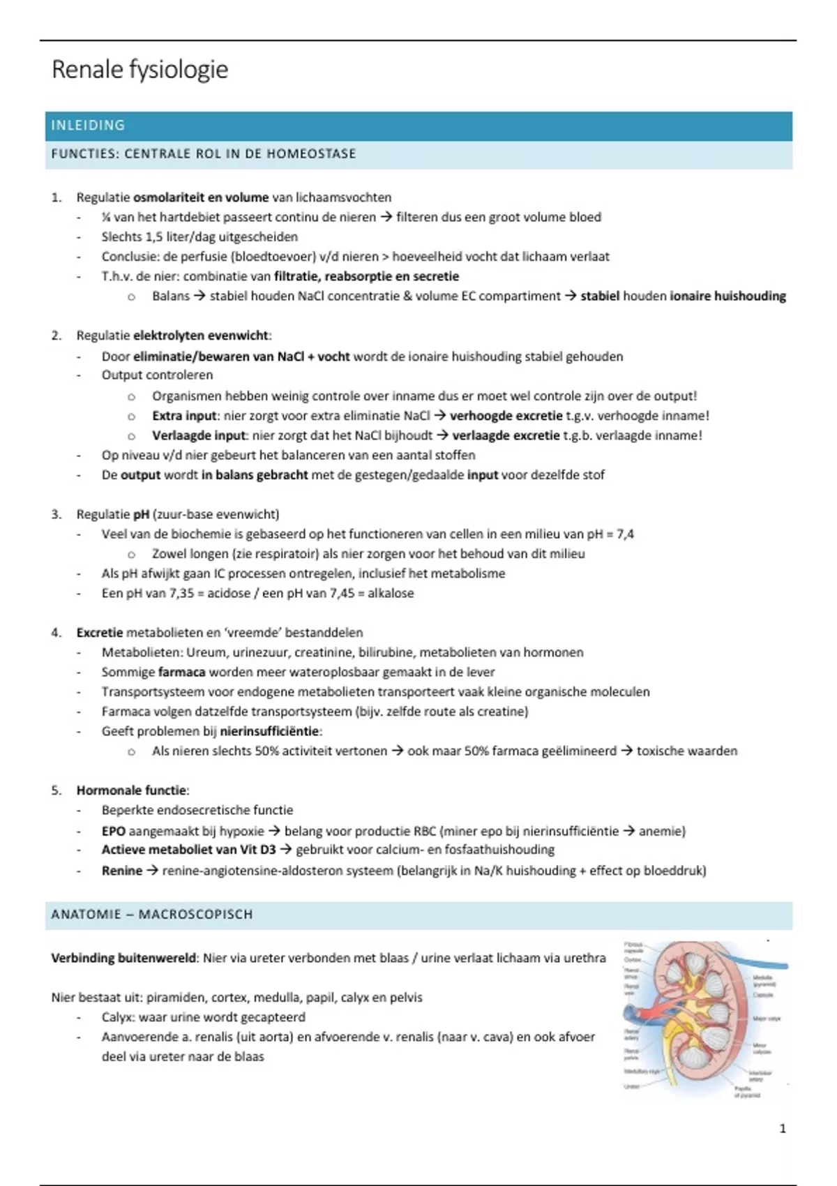RENALE FYSIOLOGIE: ALGEMEEN