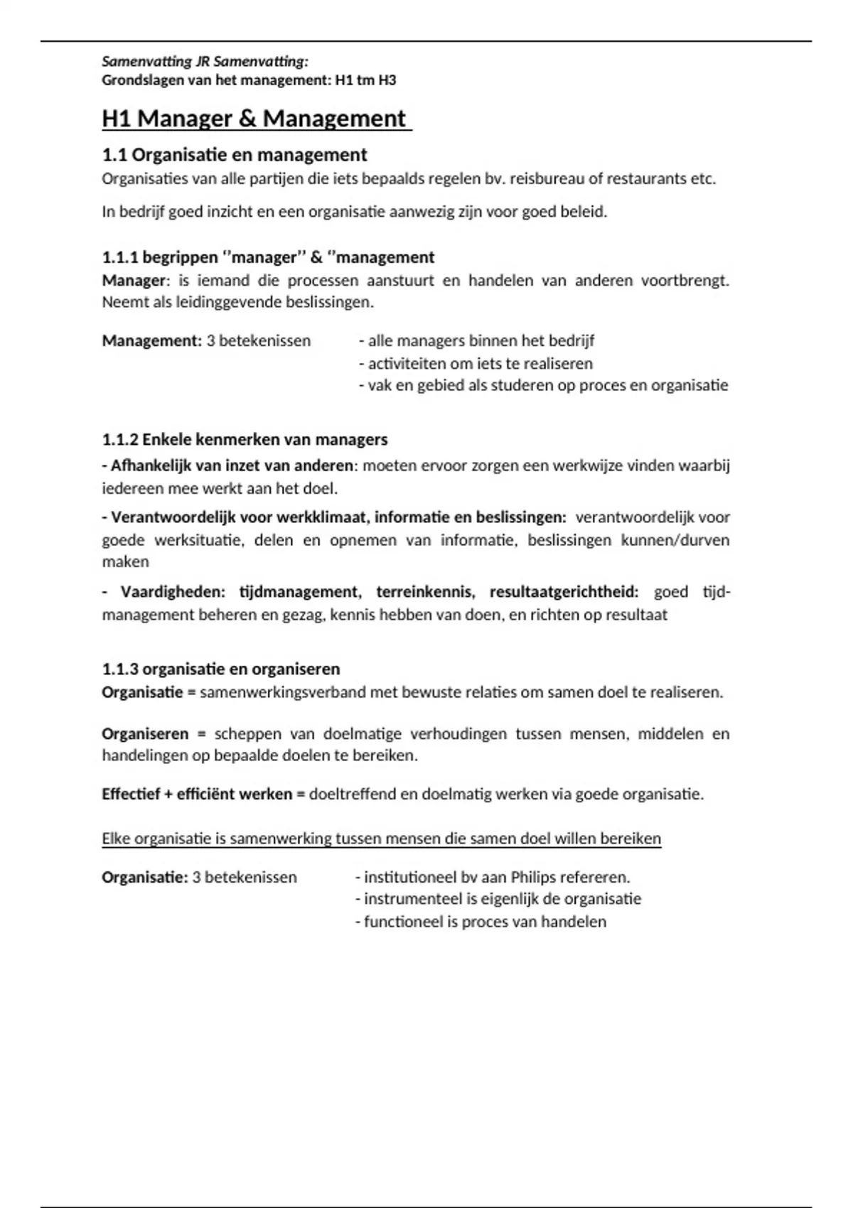 1.1.1 begrippen ‘’manager’’ & ‘’management