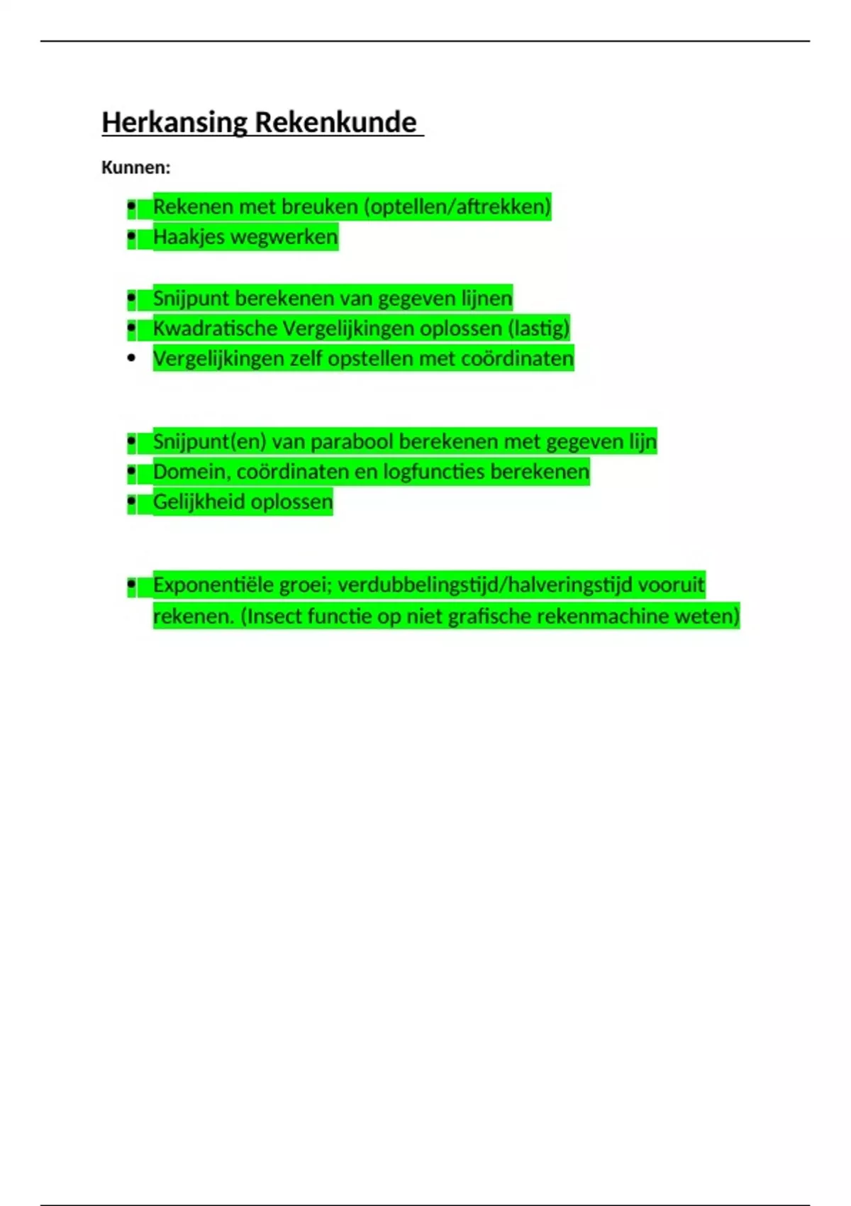 rekenen. (Insect functie op niet grafische rekenmachine weten)