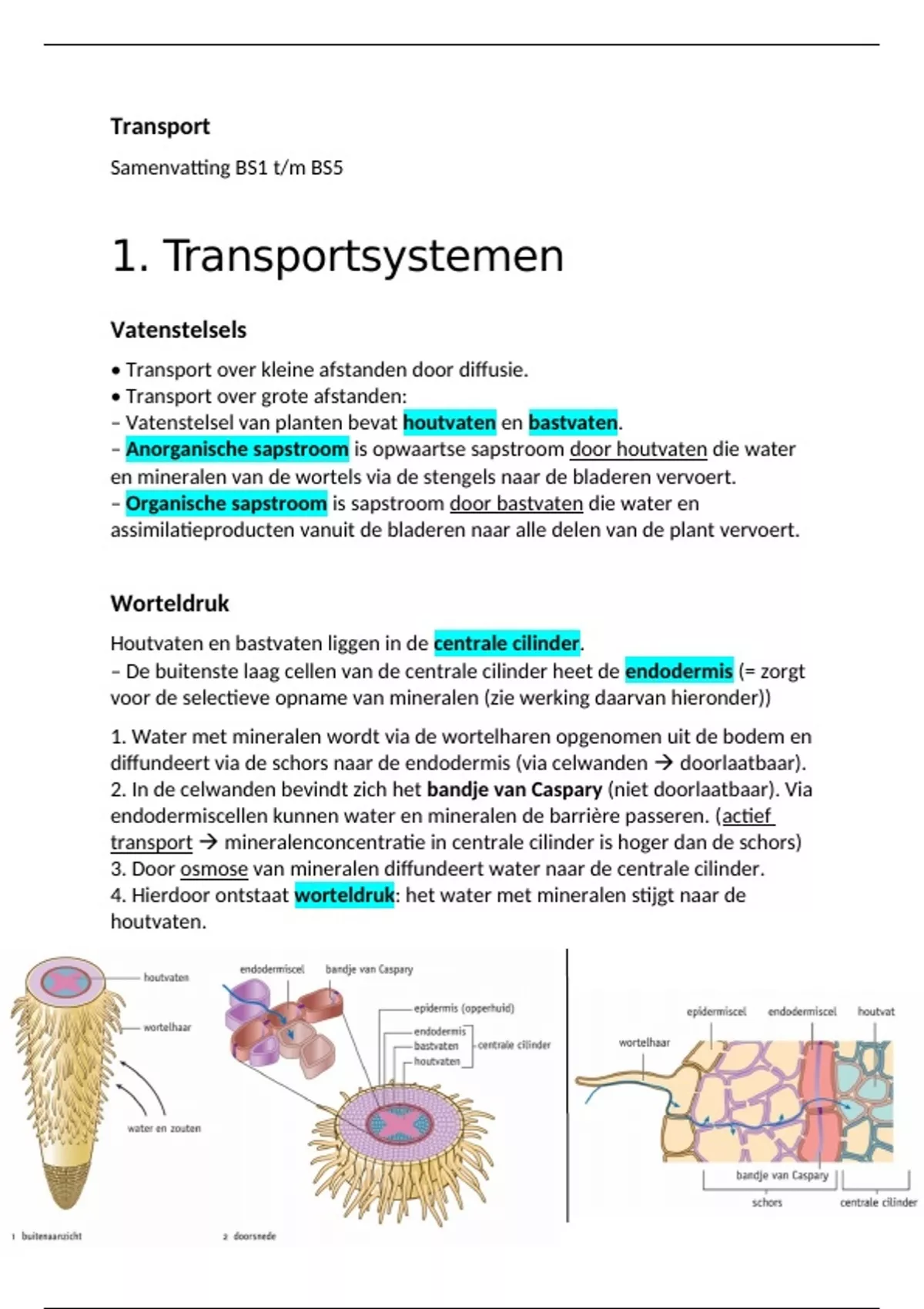 1. Water met mineralen wordt via de wortelharen opgenomen uit de bodem en