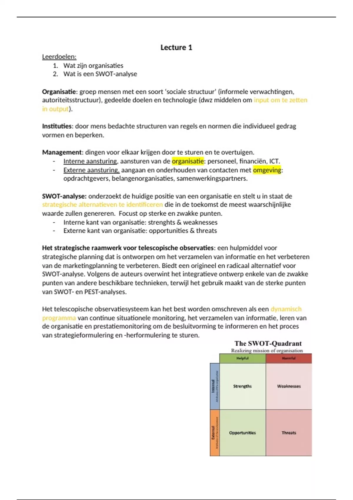 Ik heb alle colleges, powerpoint slides en de theorie uit het boek gecombineerd tot dit document