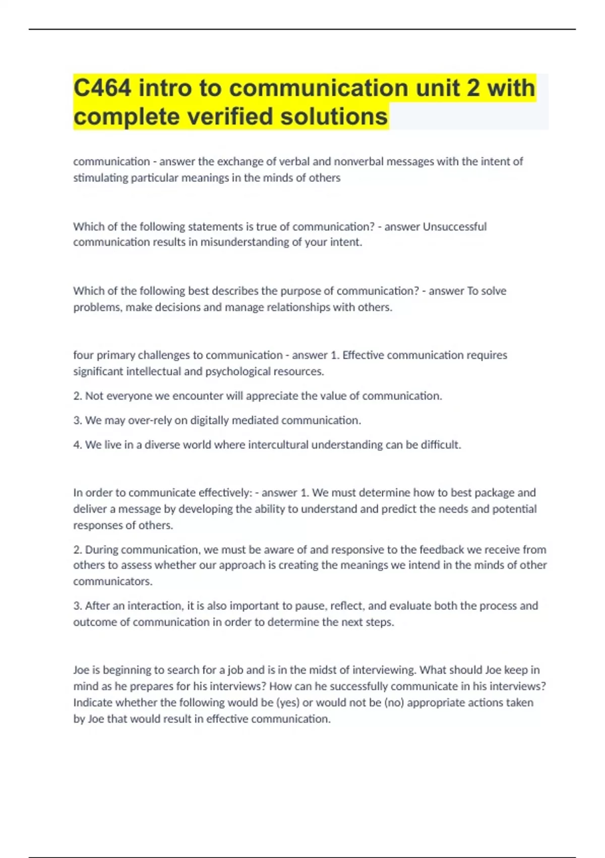 C464 intro to communication unit 2 with complete verified solutions