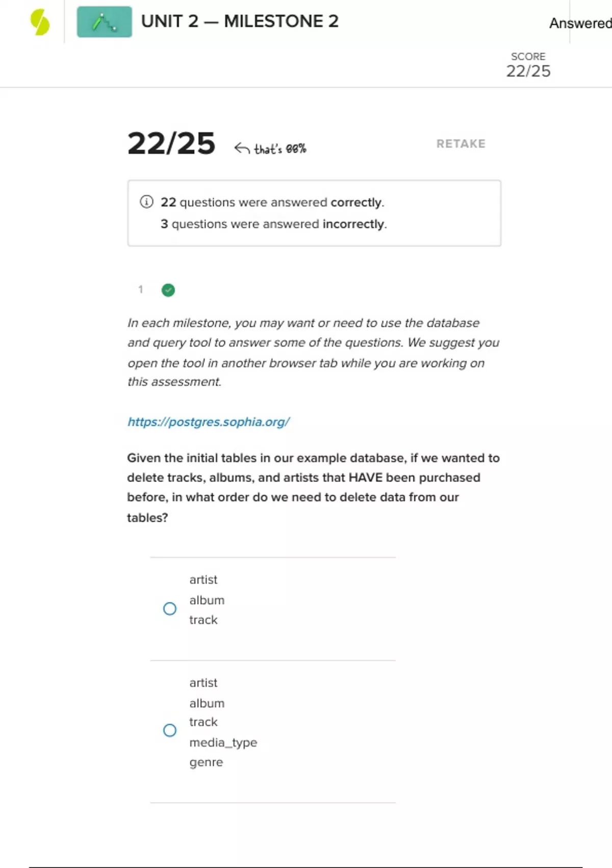 Sophia Introduction to Relational Databases Milestone 2, Answered