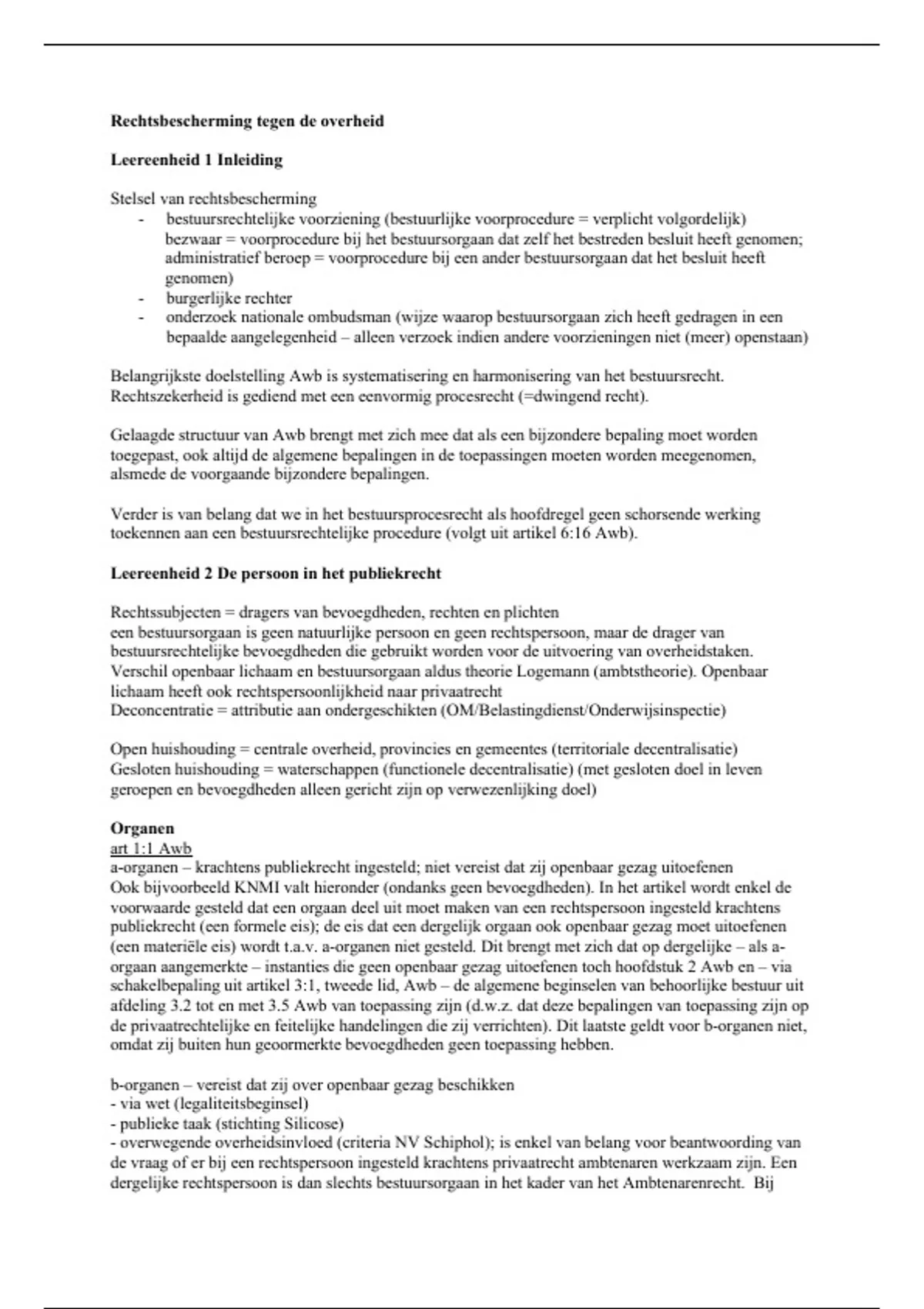 Volledige samenvatting deel van vak Bestuursrecht II, rechtsbescherming tegen de overheid