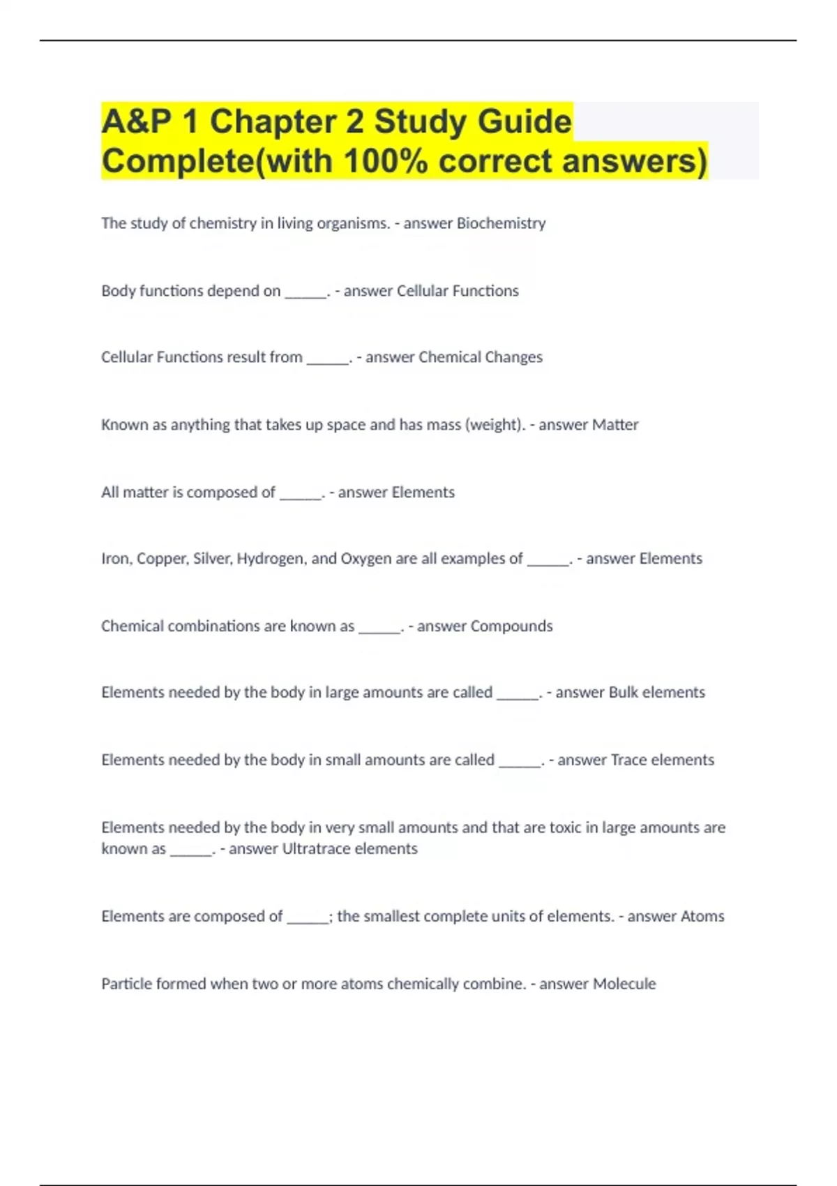 A&P 1 Chapter 2 Study Guide Complete(with 100% correct answers)