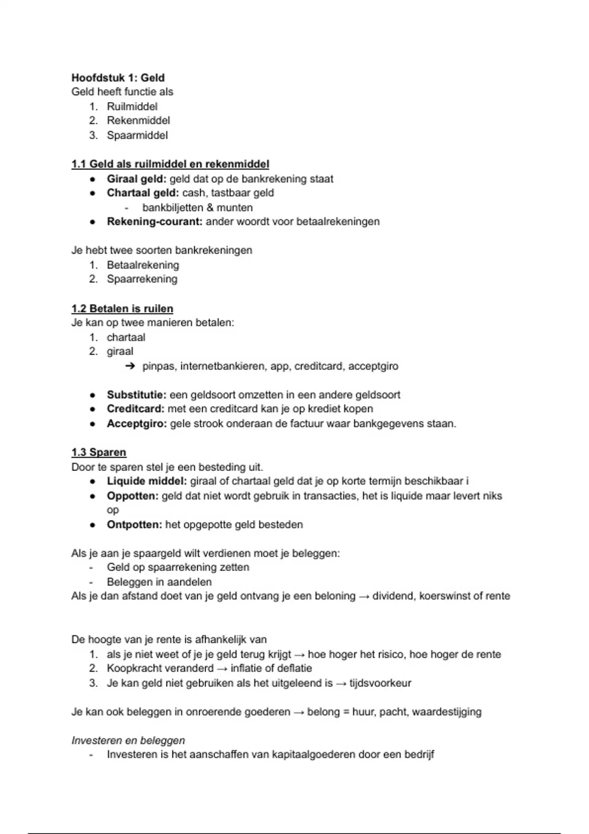 ● Liquide middel: giraal of chartaal geld dat je op korte termijn beschikbaar i