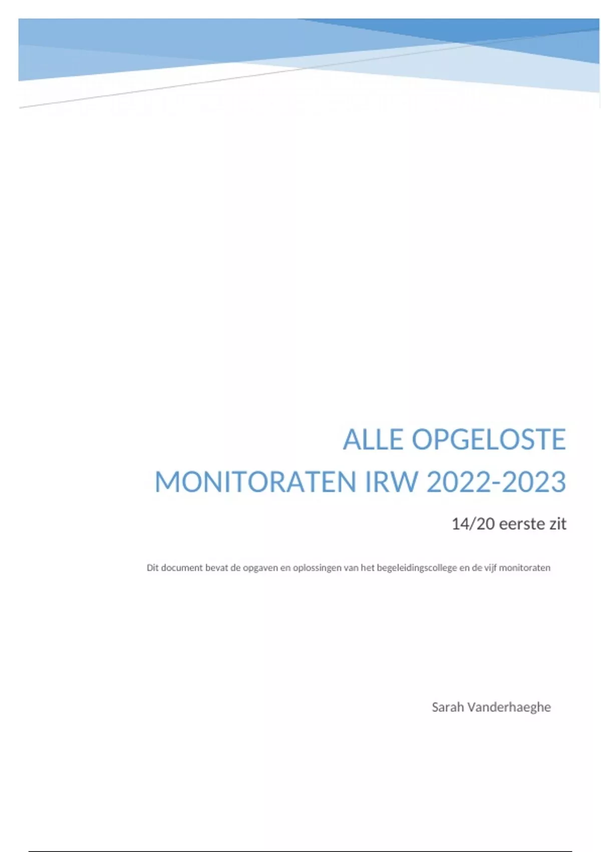 Dit document bevat de opgaven en oplossingen van het begeleidingscollege en de vijf monitoraten