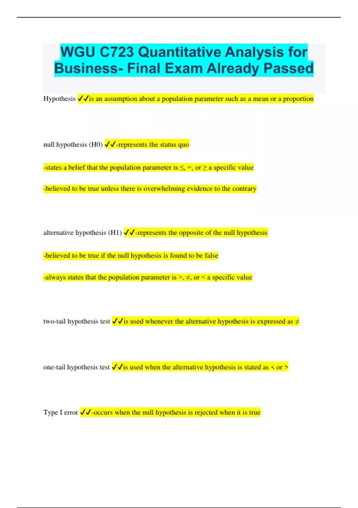 WGU C723 Quantitative Analysis for Business- Final Exam Already Passed