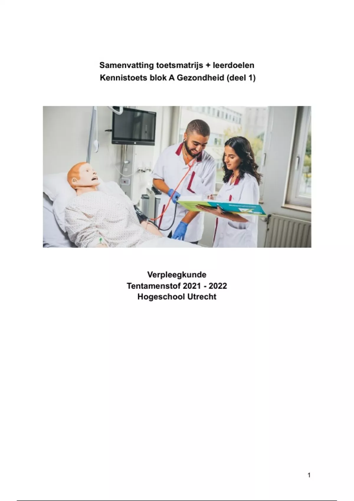 Dit is het eerste deel van de volledige samenvatting van alle leerdoelen voor kennistoets 1 van het eerste jaar verpleegkunde. Aan Hogeschool Utrecht