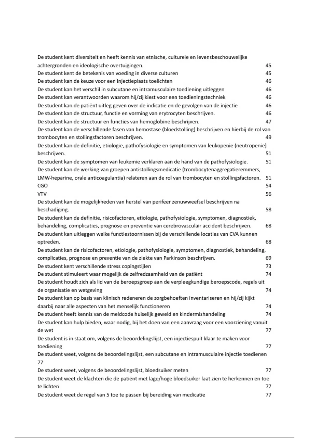 De student kan de patiënt uitleg geven over de indicatie en de gevolgen van de injectie 46