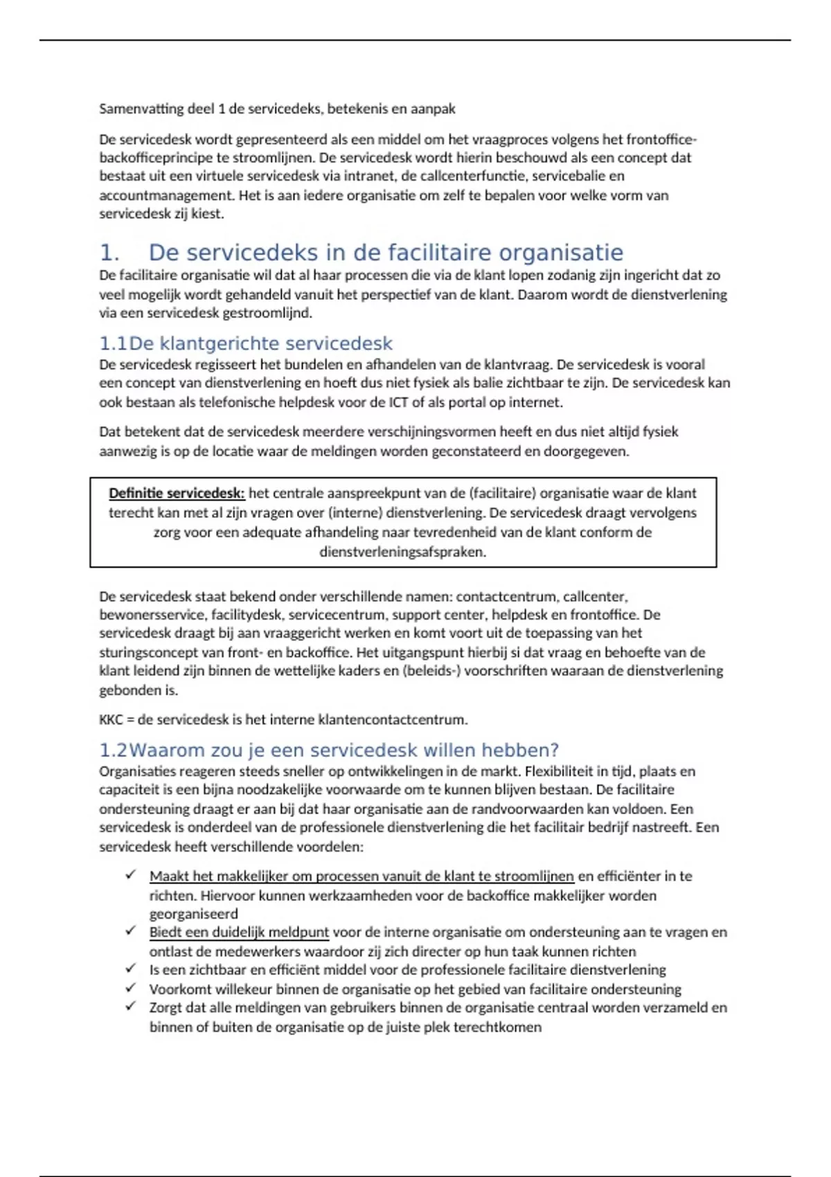 Samenvatting deel 1 de servicedeks, betekenis en aanpak