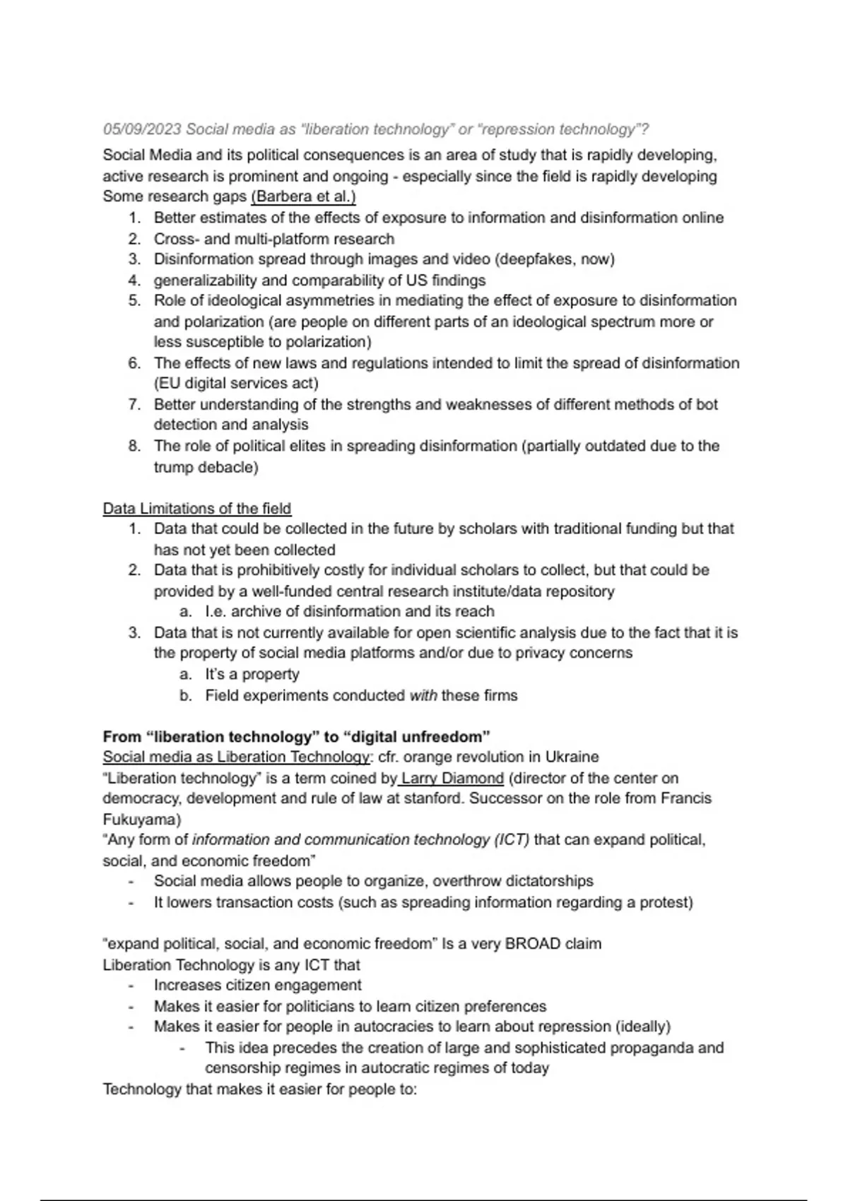 “Liberation technology” is a term coined by Larry Diamond (director of the center on