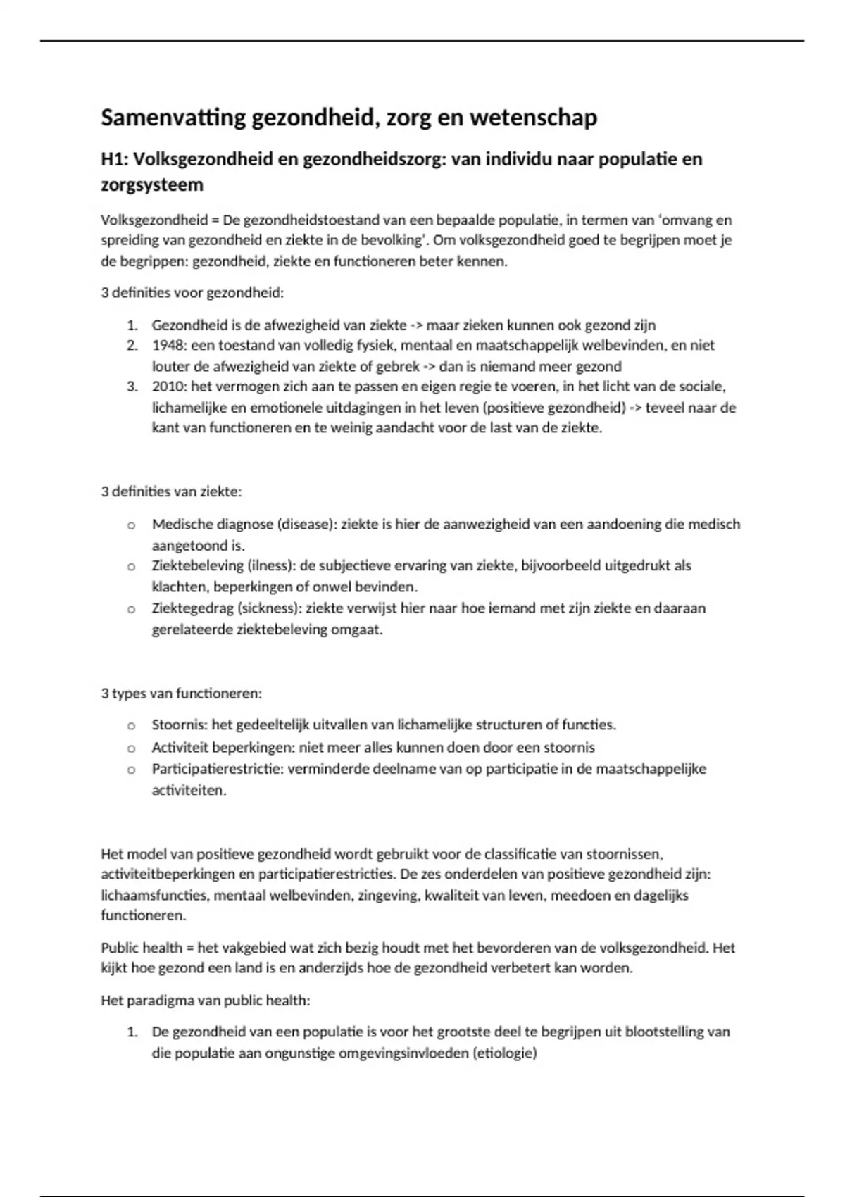 H1: Volksgezondheid en gezondheidszorg: van individu naar populatie en