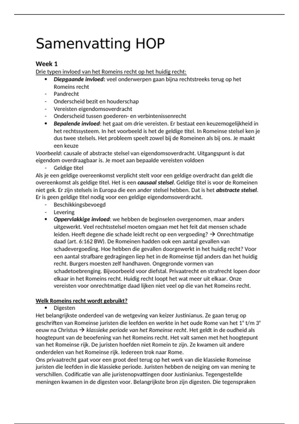 Samenvatting - Historisch vergelijkende ontwikkeling van het privaatrecht (JUR-2HOPRIV)