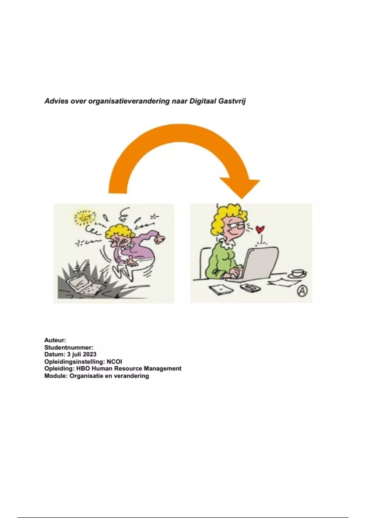 Voor u ligt de uitwerking van de moduleopdracht organisatie en verandering, behorende bij de