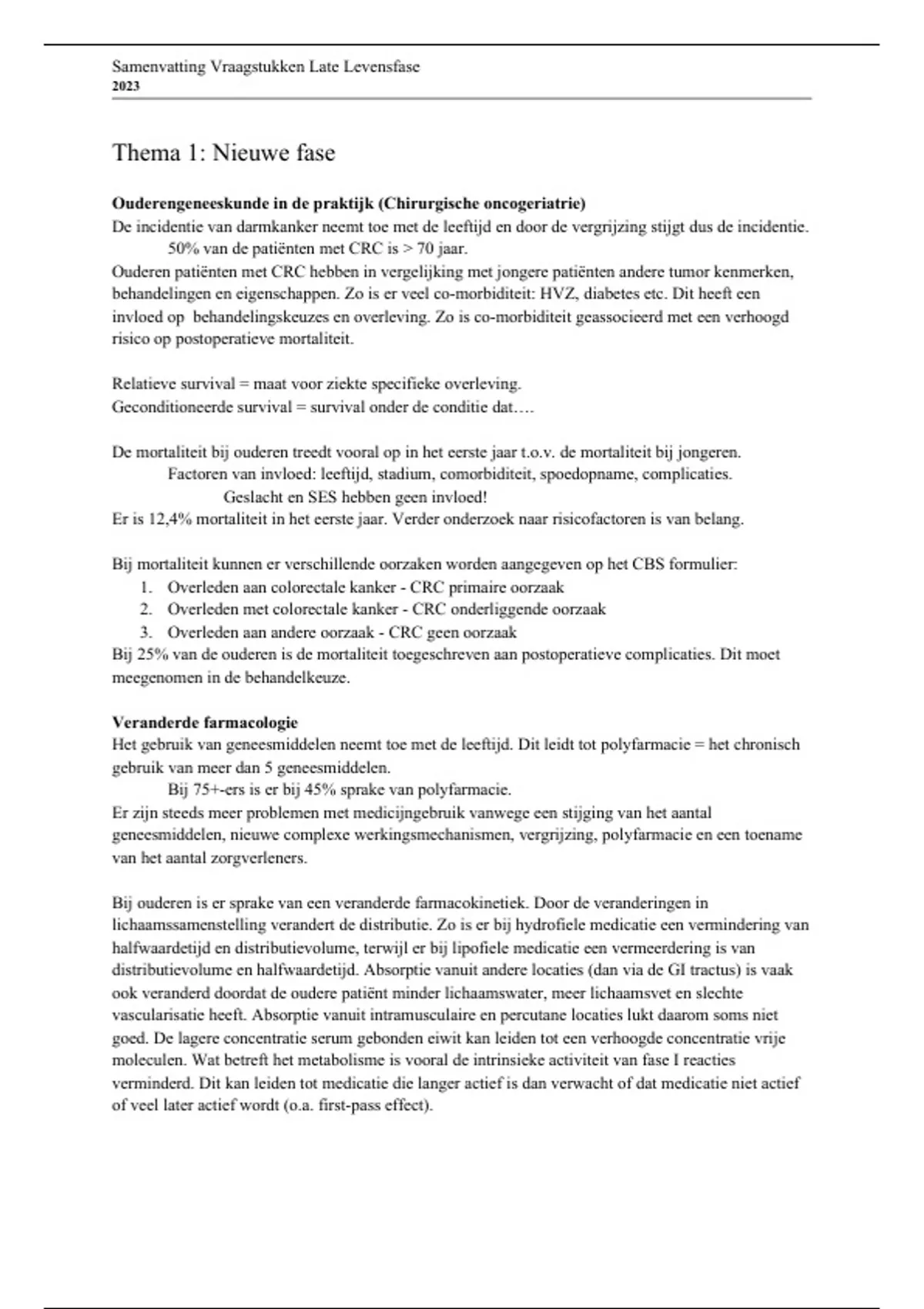 Samenvatting van alle stof die besproken wordt in het vak vraagstukken late levensfase.